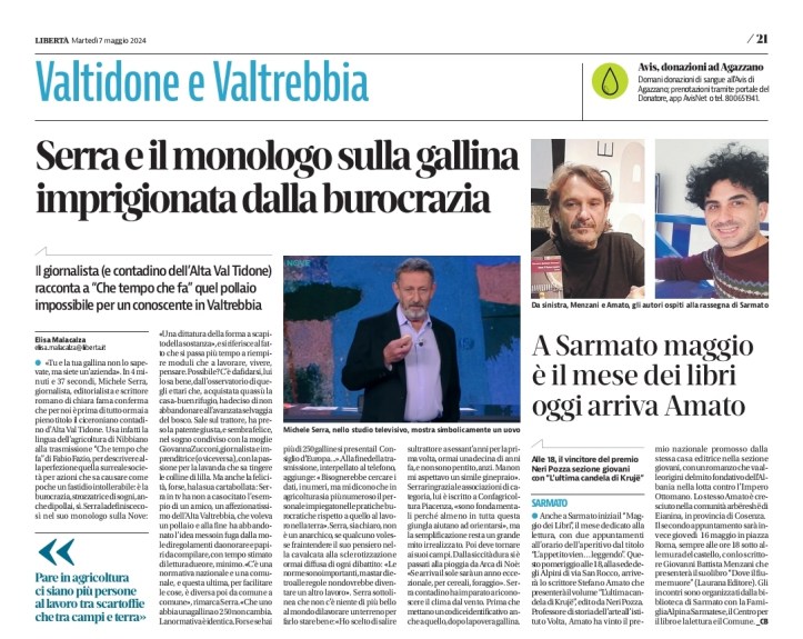 Articolo su la Libertà, il quotidiano di Piacenza, del 18 febbraio 2024.finalisti premio neri pozza 2021Premiazione del racconto “Pane Speranza”, Menzione Speciale della Giuria.Accompagnatrice d’onore: la mammaPremiazione de “Guerino e il Drago”, Books for Peace, Latina 16 settembre 2017