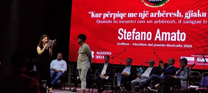 La targa del Premio Neri Pozza e il romanzo premiato, L’ultima candela di KrujëStefano Amato vincitore sezione giovani Premio Neri Pozza 2021Stefano AmatoPremio “Le Ginestre”, Menzione di Merito per la raccolta di racconti “Christos Anesti”, Firenze 9 dicembre 2017Premiazione Premio “Le Ginestre”, Firenze 9 dicembre 2017